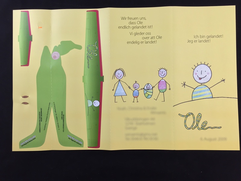 Was bietet sich für eine Geburtsanzeige besser an als unser Mailing? Humorvoll kann mit der "Fliegersprache" gespielt werden: "Endlich gelandet", "Startgewicht", "Ankunftszeit", "Flugdauer", "Landezeitpunkt", "Verspätung", bestimmt fällt Ihnen noch viel mehr ein. Beim Modell Cessy ist die Geburtsanzeige zusätzlich gepaart mit einem Glückscent.